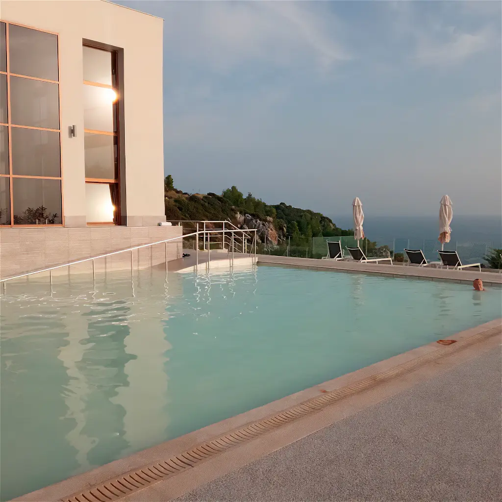 Nestled on the southern side of Kassandra, the “Loutra” thermal spa offers a truly unique wellness experience overlooking the breathtaking Aegean Sea. Renowned for its natural healing properties, the Agia Paraskevi thermal springs have been cherished for centuries, with waters rich in rare chemical elements that rejuvenate both body and spirit. This exceptional spa combines ancient Greek water-healing traditions with modern therapies, creating a sanctuary of relaxation and restoration.